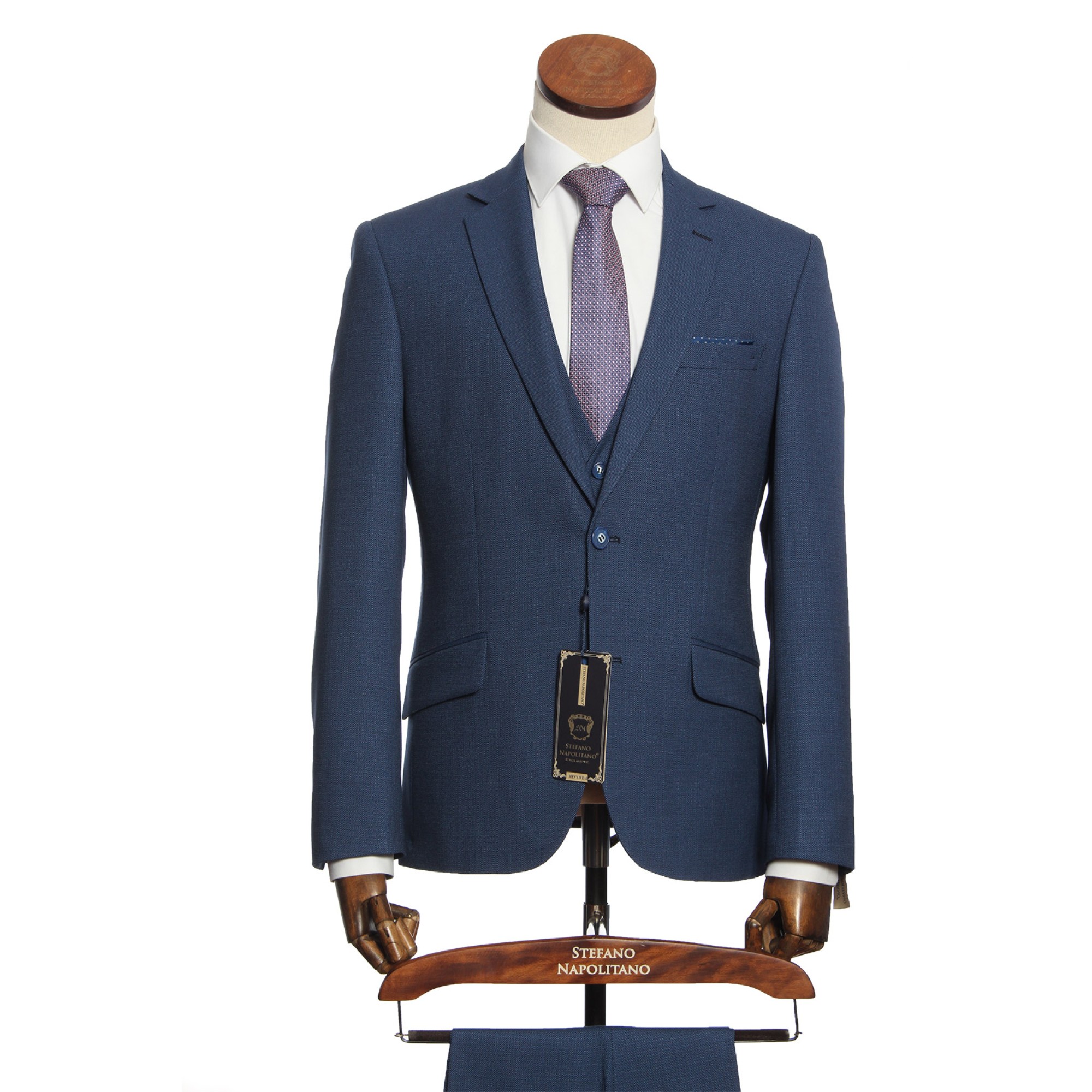 Мужской костюм "Роуз" синий тройка slim fit Stefano